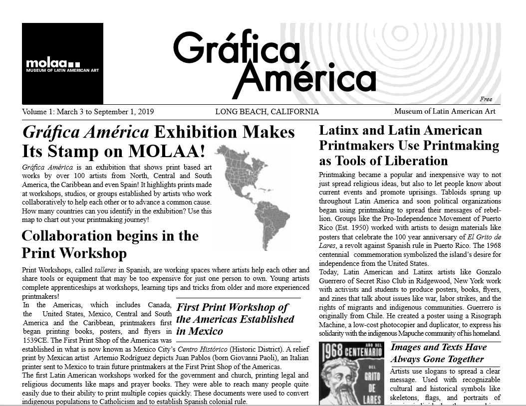 Gráfica América presents works by artists representing print shops, publishing houses, and artist collectives from throughout the United States, México, Central America, South America and the Caribbean. The exhibition celebrates the collaborative spirit of printmaking through historical prints and publications as well as contemporary traditional and experimental works made in collective studios and workshops established by Latin American and Latinx printmakers.