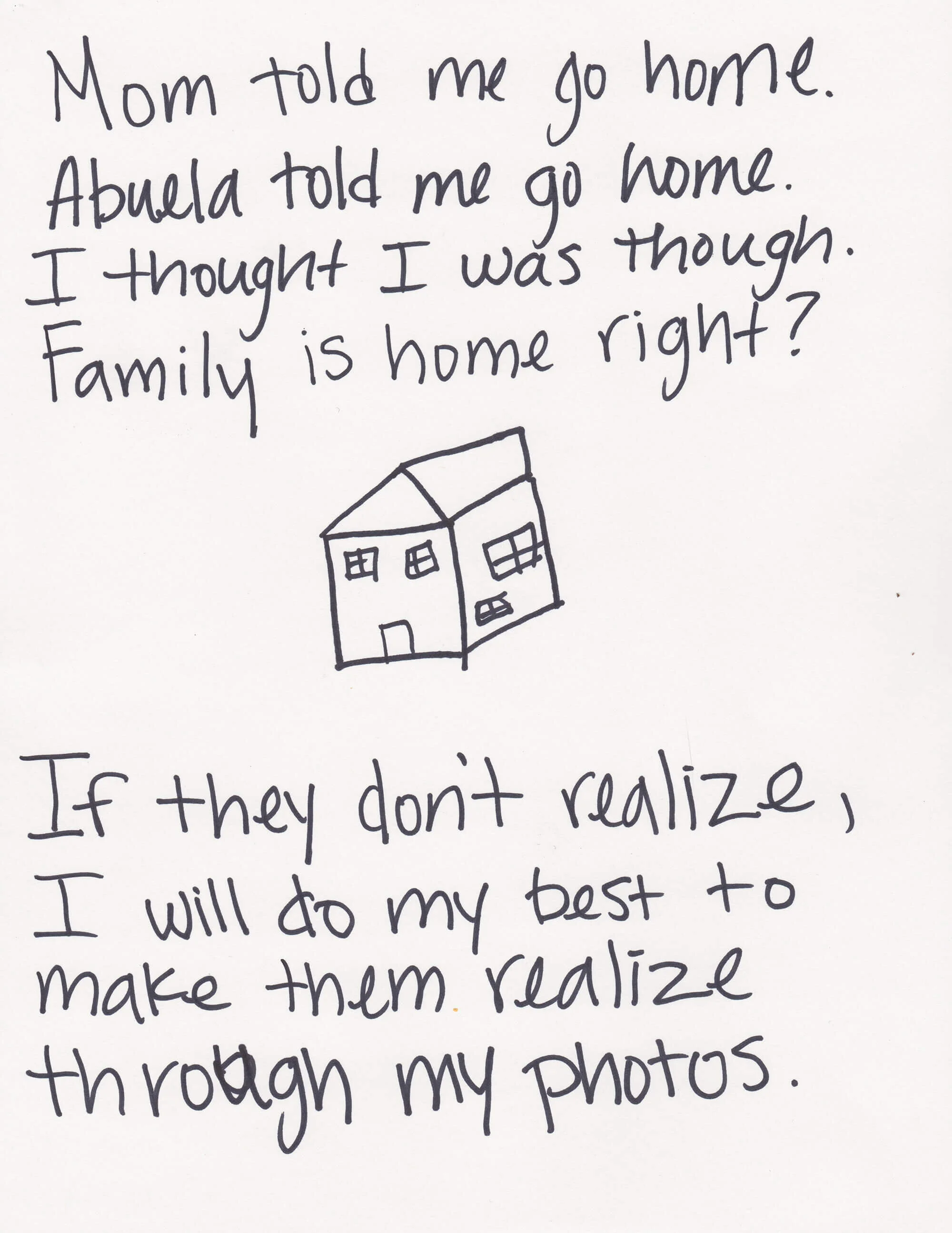 Textli Gallegos (US, b. 1999). Camouflage / Camuflaje, 2016. Digital print and permanent marker. 20 in. x 30 in. Courtesy of Las Fotos Project.