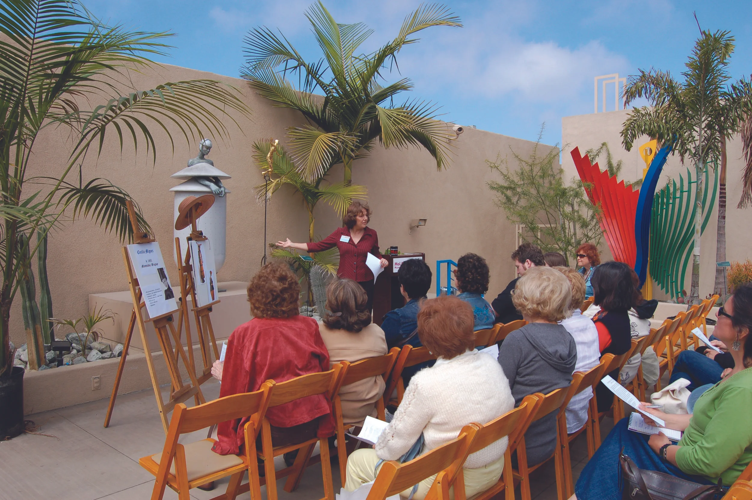 MOLAA docents provide service for a minimum of three years. Over the course of this time, docents are required to conduct two tours per month for audiences of all ages, Tuesdays through Fridays, between 10am-2pm, or on weekends 2pm and 3pm. All Docents attend meetings two Mondays each month for continuous education on MOLAA’s permanent collection, exhibitions, docent presentations, and best touring practices. In addition, docents support and attend exhibition walkthroughs and Member openings.